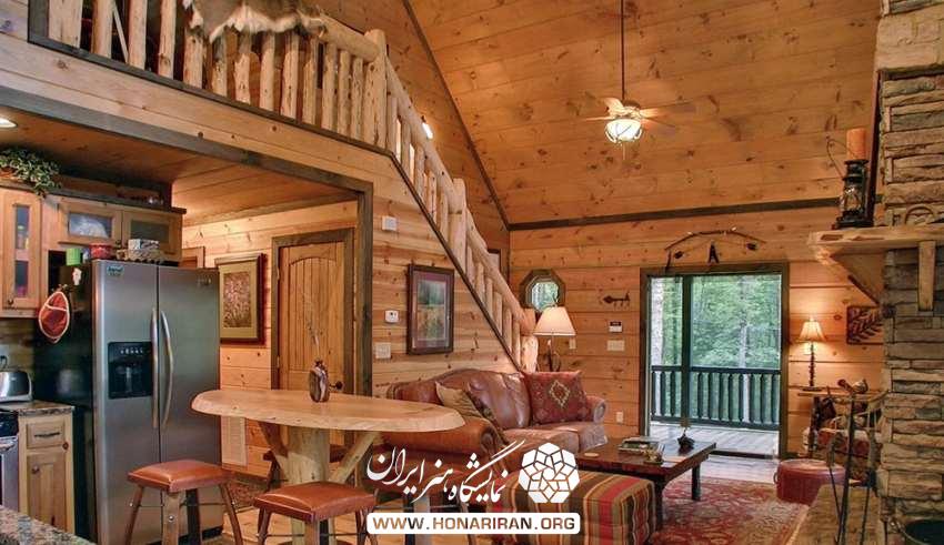 نمایشگاه هنر ایران: اتاقنشیمن چوبی به سبک جنگل و طبیعت