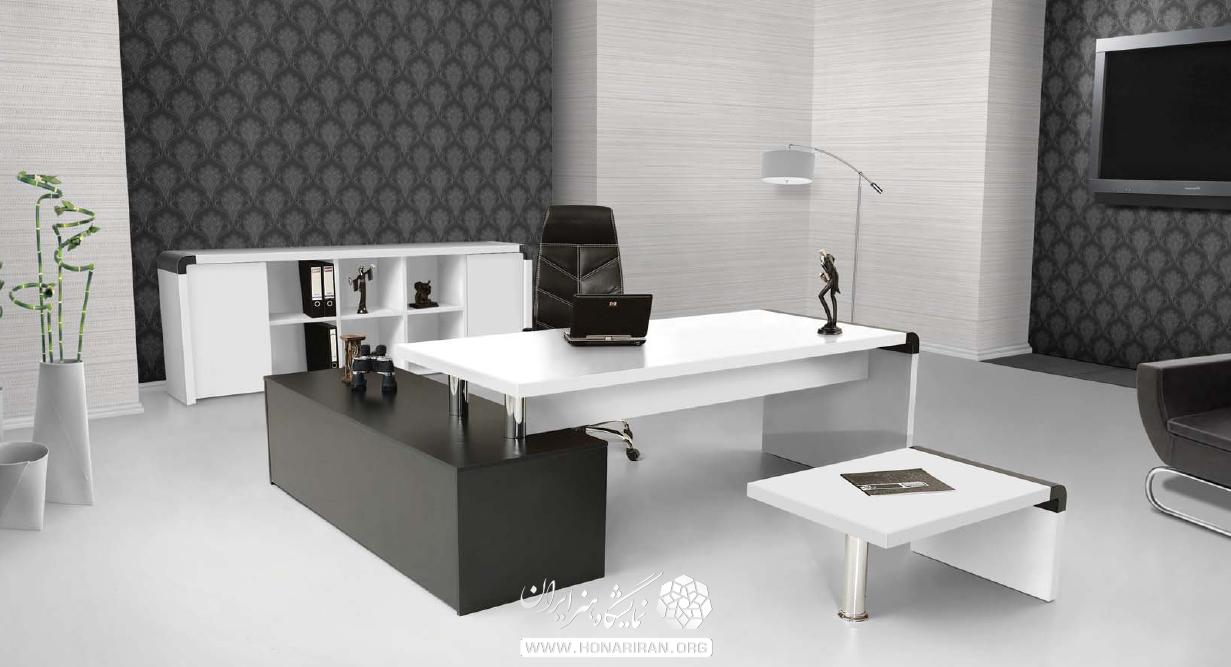 نمایشگاه هنر ایران: دکوراسیون اتاق ریاست با ترکیب رنگ روشن، در طراحی دکوراسیون این اتاق مدیریت رنگ سفید و چوب به خوبی با هم ترکیب شده اند. چوب از عناصری است که در طراحی دکوراسیون اتاق مدیریت به وفور مورد استفاده قرار میگیرد.