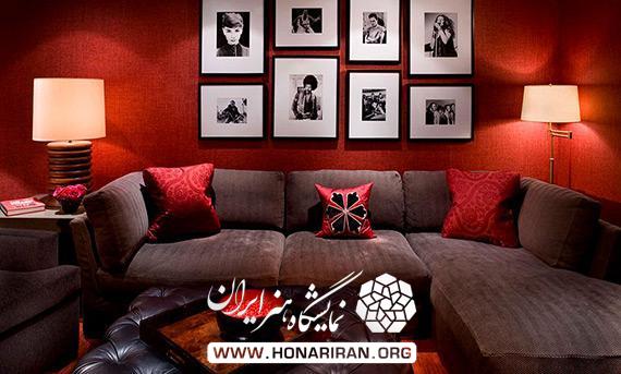 نمایشگاه هنر ایران: قاب تابلوهای نقاشی سفید و نارنجی در این نقاشیها، آنها را بر زمینه دیواری رنگ پریده به کارهای هنری عالی تبدیل نموده که پس زمینهای آرامش بخش برای رنگهای زنده بوجود میآورد.