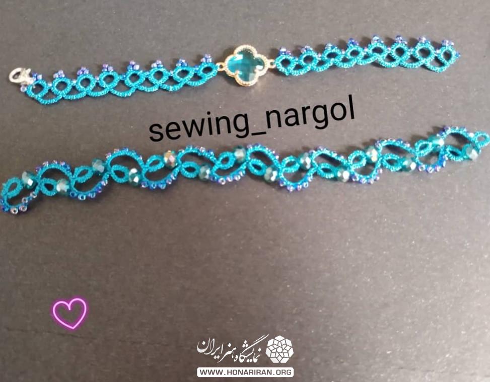 نخ ابریشم منجوق رنگ ثابت متریال قفل طوطی وزنجیر استیل رنگ ثابت دررنگ دلخواه شما بافته میشود.