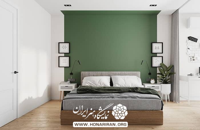 نمایشگاه هنر ایران: آرامش با رنگ خاکستری و سبز در اتاق خواب