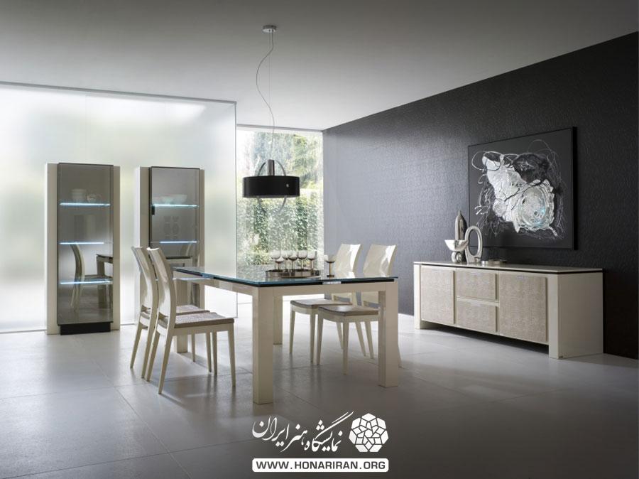 نمایشگاه هنر ایران: هم نشینی رنگهای سفید, مشکی و خاکستری (نوک مدادی) در دکوراسیون سبک مدرن ,فضایی شیک و خاص را به وجود میآورد که روح مدرنیته در آن دمیده شده است .