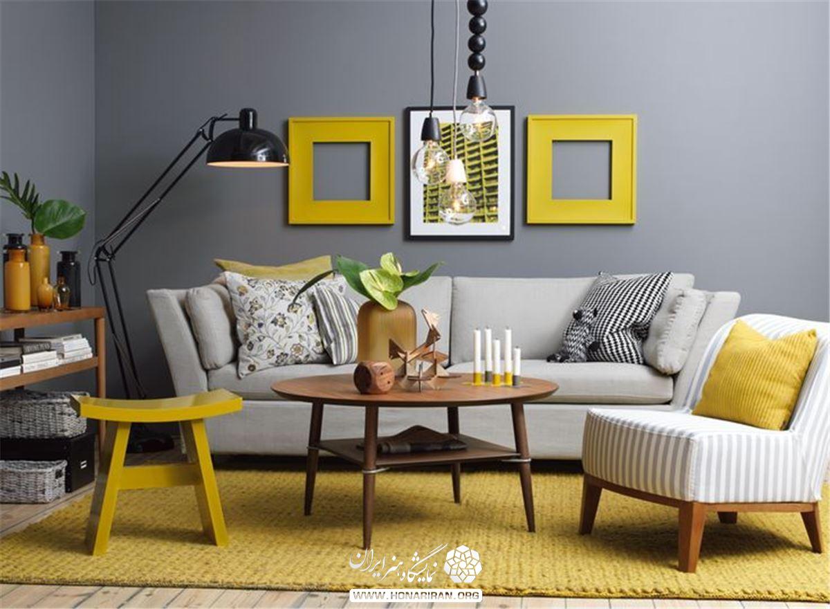 هنگامی که از رنگهای سنگین چون خاکستری دیوارها و قهوهای مبلها استفاده میکنید، ممکن است حس آزادتری برای چیدمان بقیه اتاق داشته باشید.