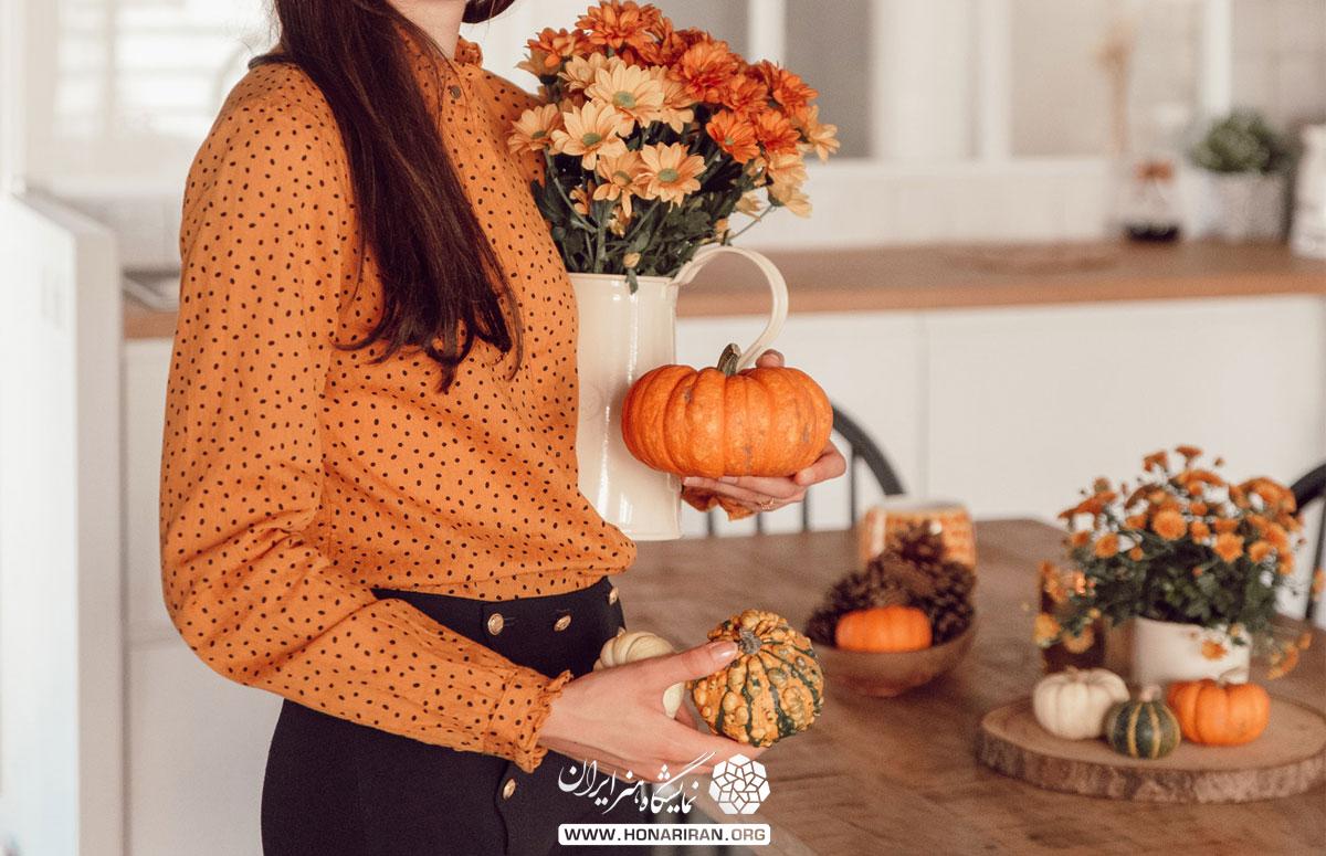 نمایشگاه هنر ایران: آشپزخانه پائیزی با تزئینات و رنگ های گرم