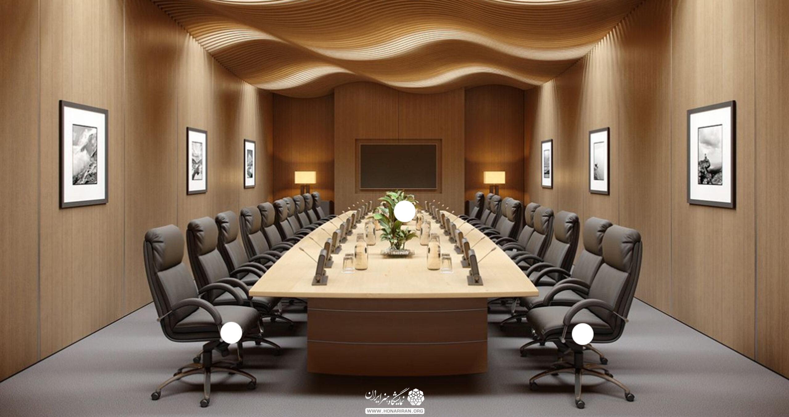 نمایشگاه هنر ایران: استفاده از عنصر چوب در طراحی دکوراسیون اتاق کنفرانس