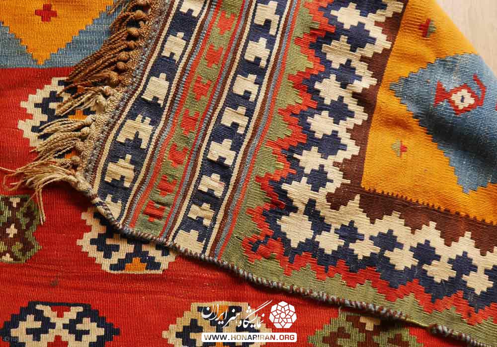 8ـ گلیم هایی که با این روش (چاک دارـ پله ای ـ گل به گل ) بافته می شود، دو روی آنها یکسان و هر دو رو قابل استفاده است.
