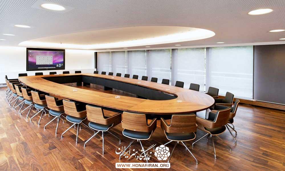 در کنار رنگ بندی مناسب اتاق کنفرانس، آنچه که در یک اتاق کنفرانس حرفه ای بسیار اهمیت دارد، استفاده از یک میز کنفرانس شیک و مناسب و استفاده از صندلیهای کنفرانس با کیفیت مطلوب میباشد.