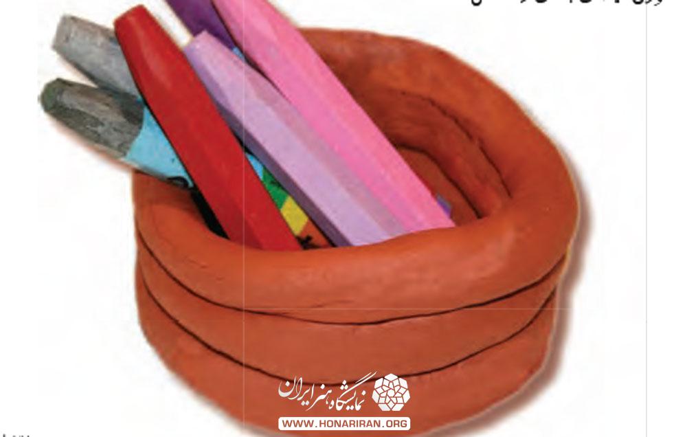4- مقـداری دیگـر از ِگل را بـردارید و روی صفحـه ی چـوبــی و یا میز قــرار دهیـد. بـا کف دســت ها آن را به طـــرف جلو و عقب بغلتـانیـــد تــا به صــورت فتیله ای بــا قطـر یکنـواخت درآیـد.