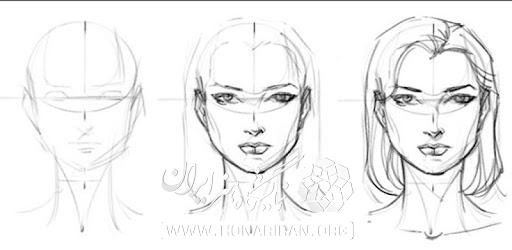 نمایشگاه هنر ایران: قرار نیست در اینجا به شما طراحی چشم، بینی و دهان را آموزش دهم. در مقابل ایده اضافه کردن خطوط میمیک و حالت برای نمایش چهره را مطرح می‌کنم. مبنای خطوط طراحی من چین و چروک‌ها، چین‌های غیرواقعی (به دلیل حالت چهره موقت ایجاد می‌شوند) و سایه روشن‌ها هستند. مطالعه نسبت‌ها را در این مرحله فراموش نکنید. یک خط کش و یک کتاب بردارید و قوانین و خطوط مخصوص خود را ایجاد کنید.