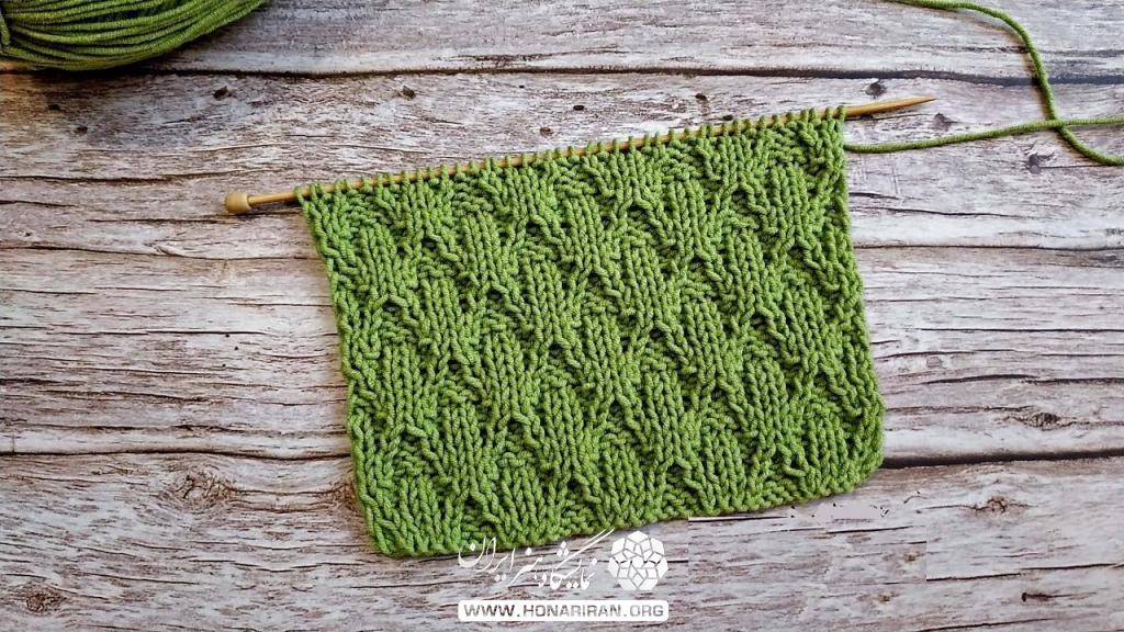 2. در حین بافتن ســعی کنید بافت کامل به یک میل منتقل شود، بعد بافت را کنار بگذارید.