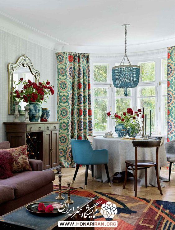 نمایشگاه هنر ایران: نمای رو به طبیعت در دکوراسیون پذیرایی با پارکت‌های چوبی