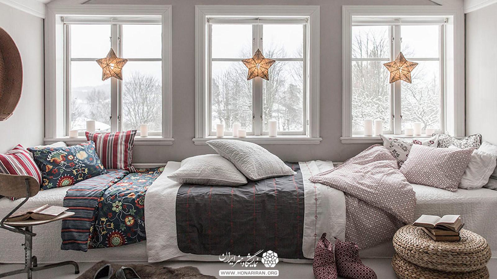 نمایشگاه هنر ایران: پردهها از مهمترین و اساسیترین قسمتهایی هستند که در دکوراسیون زمستانی باید به آنها توجه شود. پردههای توری و نازک را عوض و به جای آنها پردههایی با پارچه ضخیم و رنگ مناسب نصب کنید. با این کار هم گرمای خانه هدر نمی رود، هم خانه زیباتر میشود. اگر این کار برایتان مقدور نیست، میتوانید از یک پارچه ساده اما ضخیم کمک بگیرید و آن را پشت پرده تابستانی نصب کنید. با این کار همان هدف صرفه جویی در انرژی و زیبایی محقق میشود.