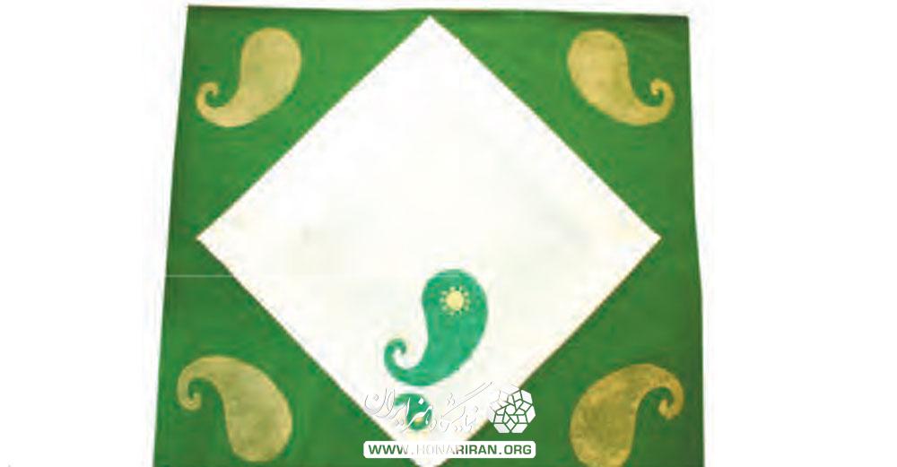 9- پــس از رنــگ آمیزی بســیار بــا دقت و آهسته کلیشه را از روی پارچه بردارید.