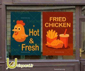 طرح لایه باز استیکر و برچسب شیشه فستفود با دو طرح مرغ سوخاری