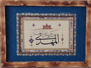 تابلو خط وتذهیب المهدی طاووس اهل الجنه