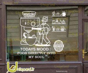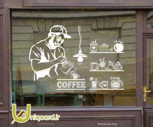 طرح لایه باز استیکر و برچسب دیوار و شیشه کافی شاپ با طرح باریستامن و کافه