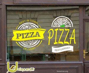 طرح لایه بازاستیکر و برچسب شیشه رستوران با طرح دو لوگو پیتزا اسلایسی