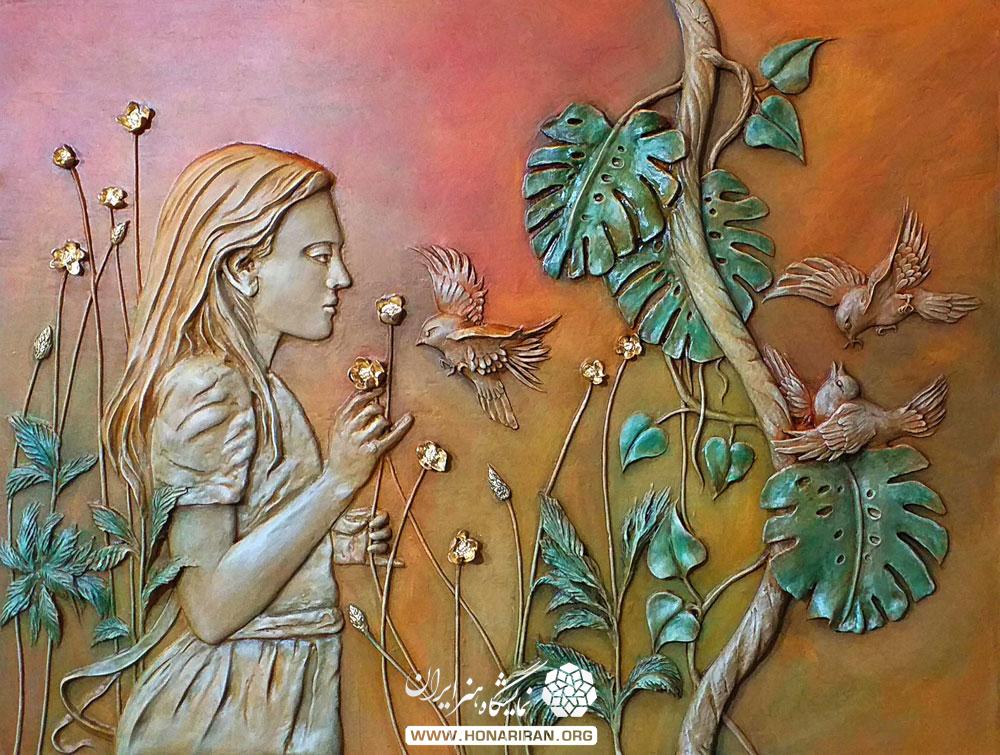 نمایشگاه هنر ایران: نقش برجسته حالتی بین طراحی و مجسمه است. به برجستگیها و فرورفتگیهایی که بر روی مواد و مصالح بوجود آوریم بطوریکه هنوز از زمینه و صفحه جدا نشده باشد، نقش برجسته میگویند.