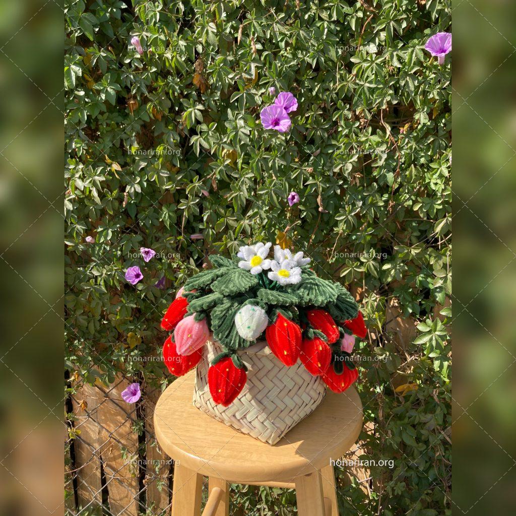 بوته توت فرنگی تزئینی مخملی بوته توت فرنگی پیپ پاک کنی با جزئیات کامل دارای ۴ جاسوئیچی جدا شونده طرح توت فرنگی