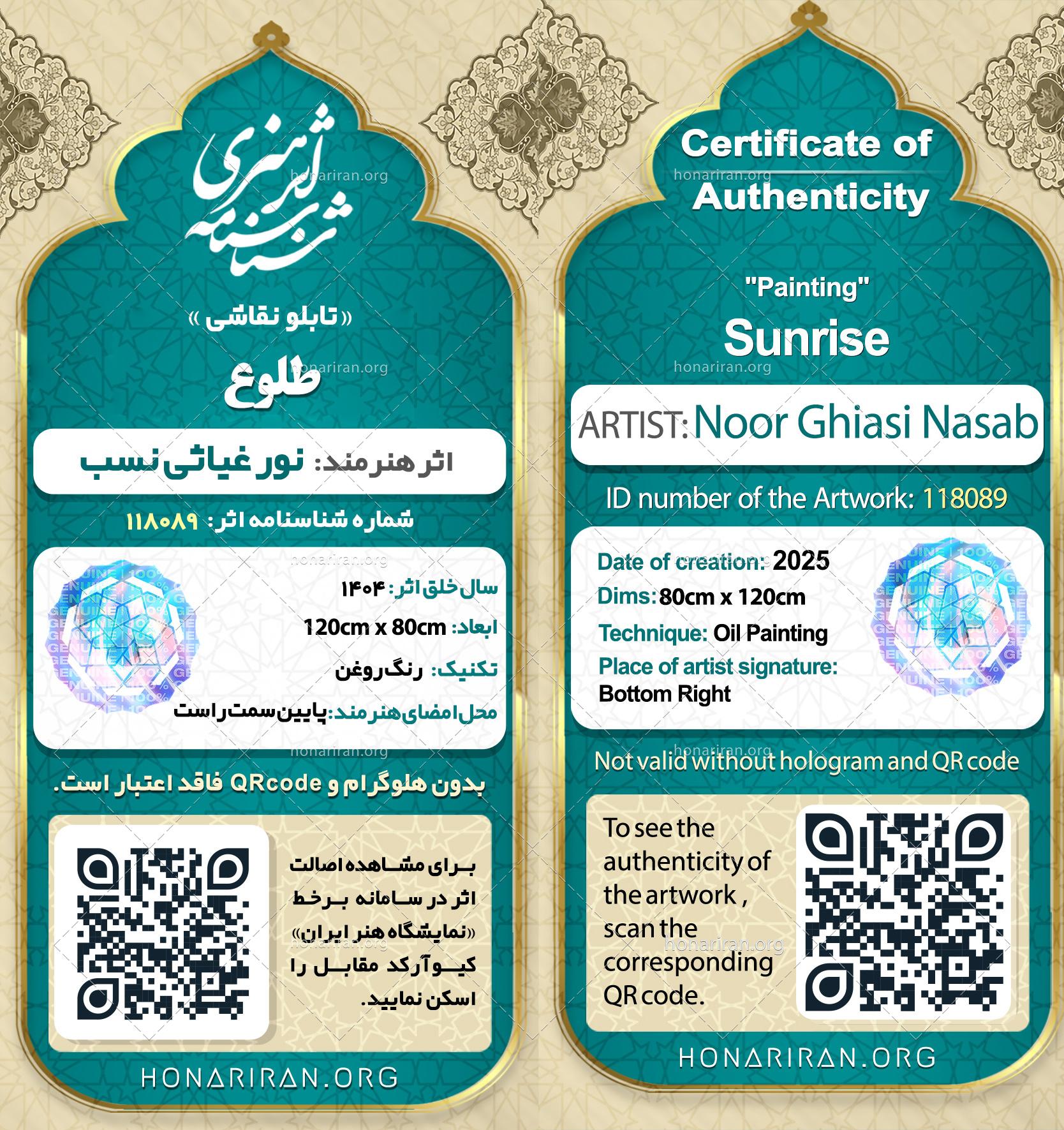 تابلو رنگ روغن طلوع از مجموعه ی خورشید .