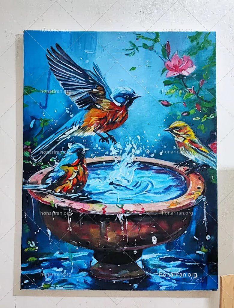 تابلو رنگ روغن پرندگان