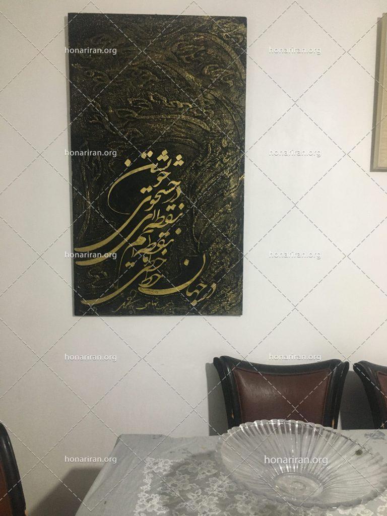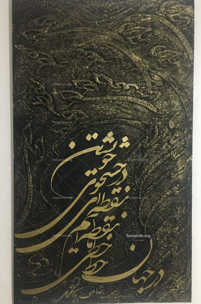 تابلو نستعلیق، جستجوی خویشتن خورده شیشه.ماسه.زغال.معرق چوب .رنگ روغن و رنگ اکریلیک