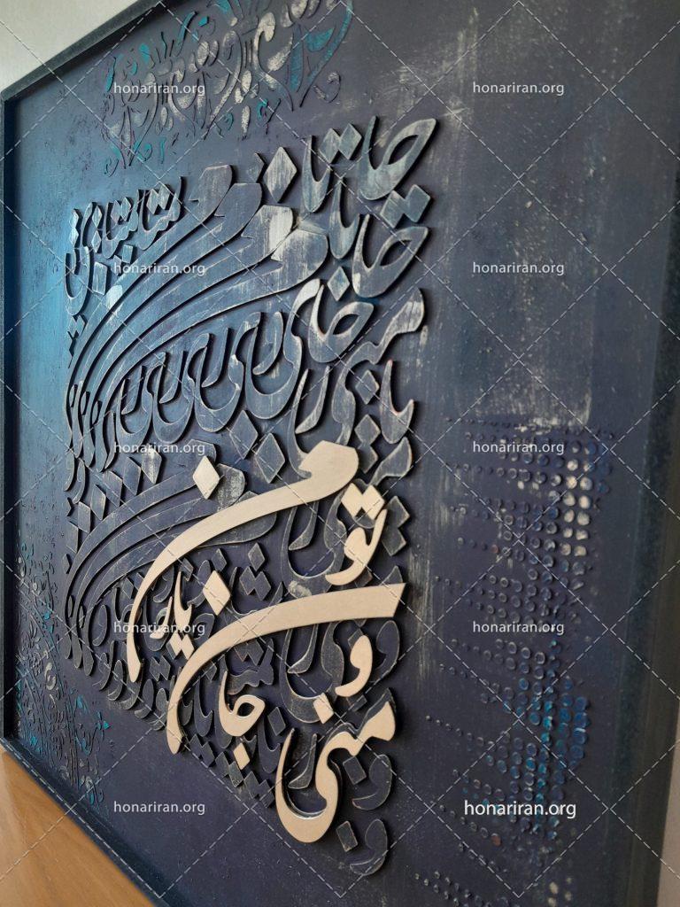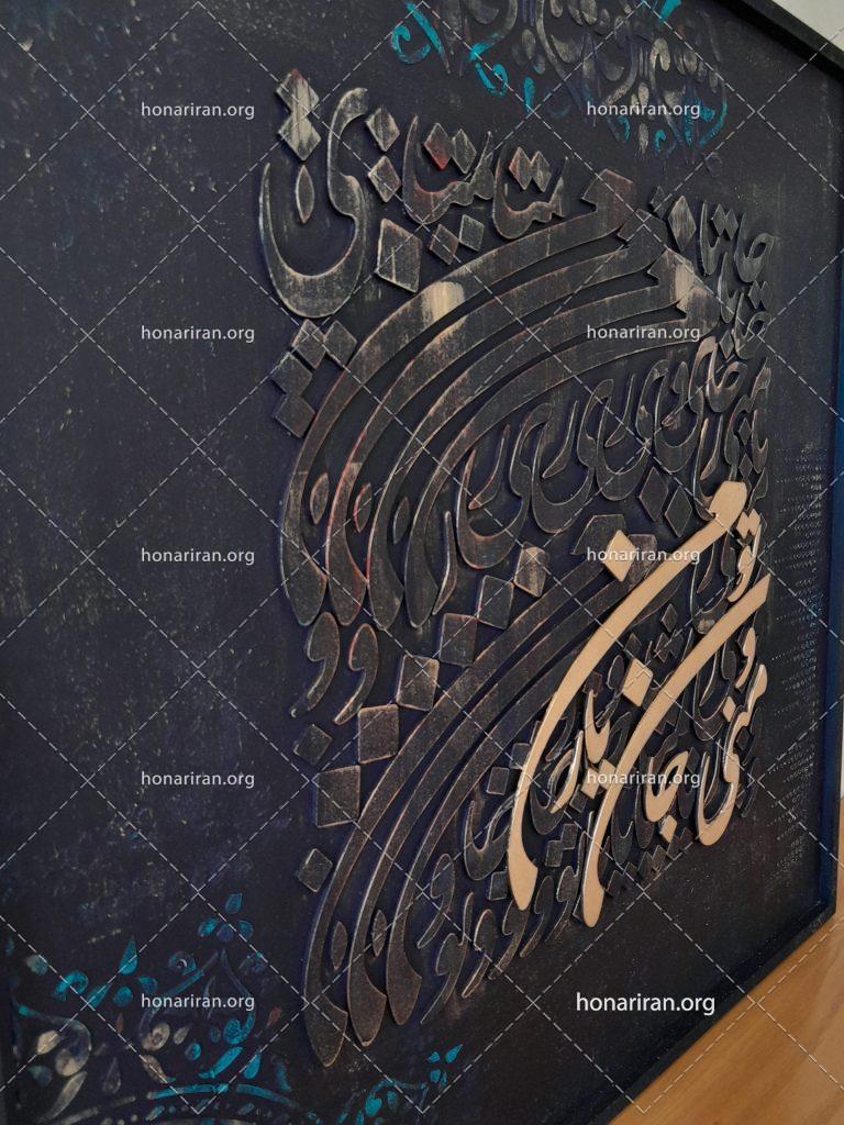 تابلو نقاشی خط «یار من» ابعاد 70*70 متریال: رنک اکریلیک، تمام چوب سبک: پتینه روی چوب
