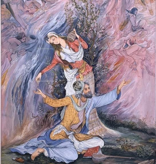 تابلو نقاشی مینیاتوری خیام مینیاتور خیام ۷۰*۵۰ همراه پاسپارتو قاب.
