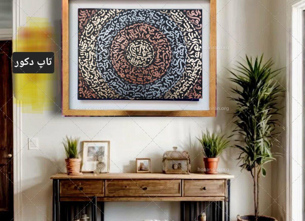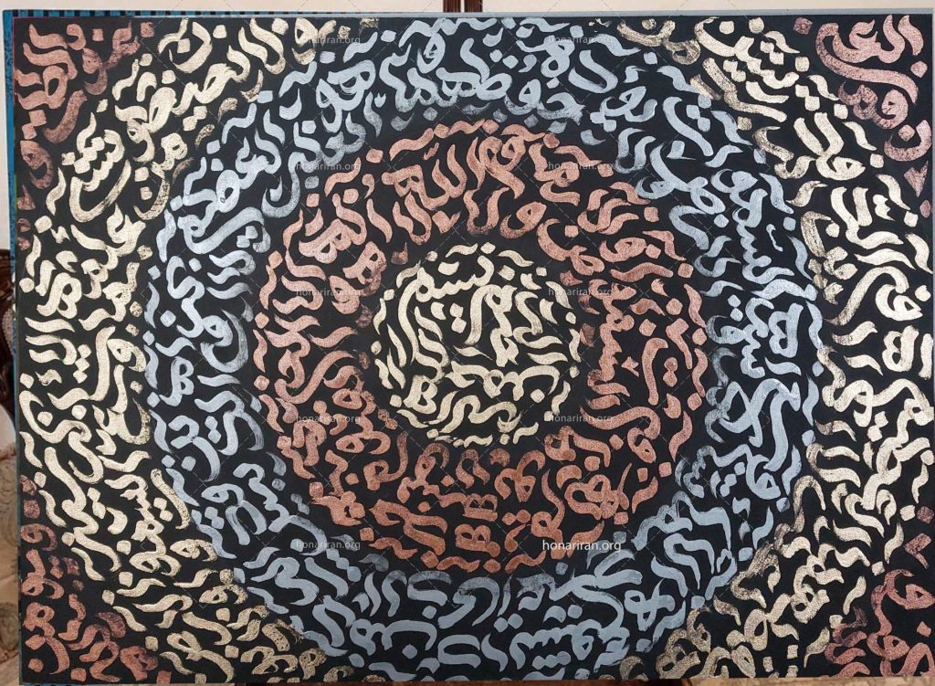 تابلو کالیگرافی آیت الکرسی کار شده با ورق طلا نقره و مس و رنگ اکریلیک کار شده روی بوم با ابعاد ۳۰×۴۰