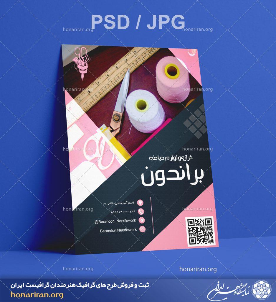 تراکت لایه باز و طرح آماده پوستر خرازی و لوازم خیاطی