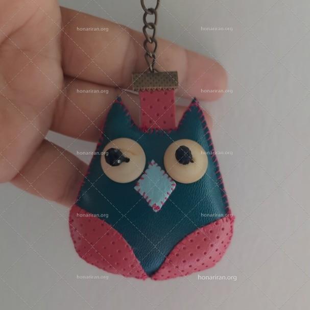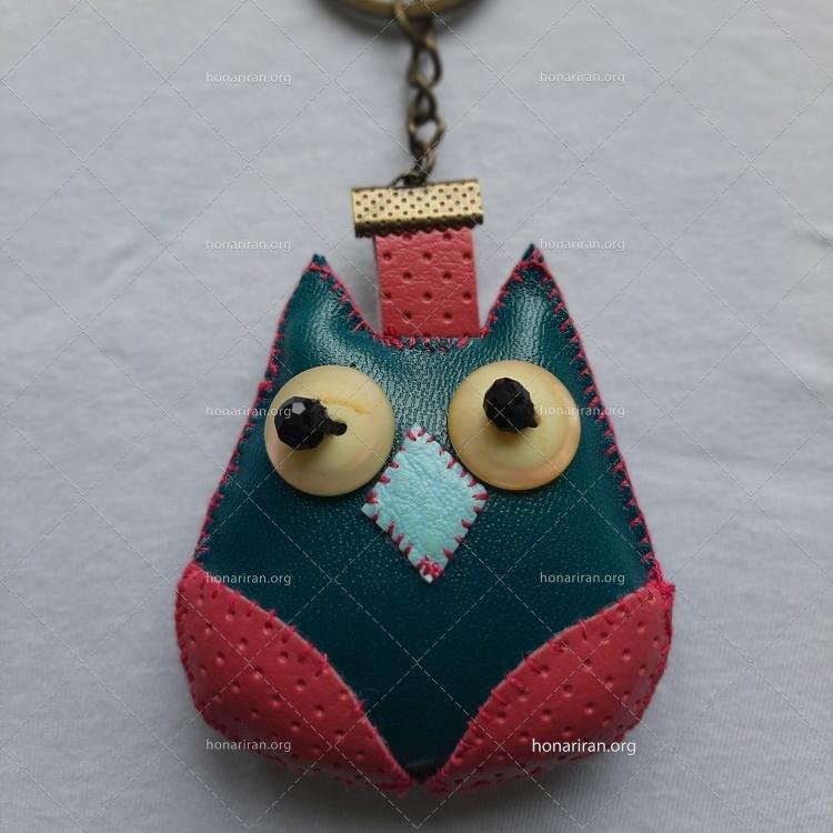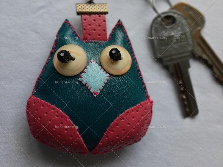 جا کلیدی دستدوز چرم طرح جغد رنگی کاری بسیار ظریف و تمیز و خاص