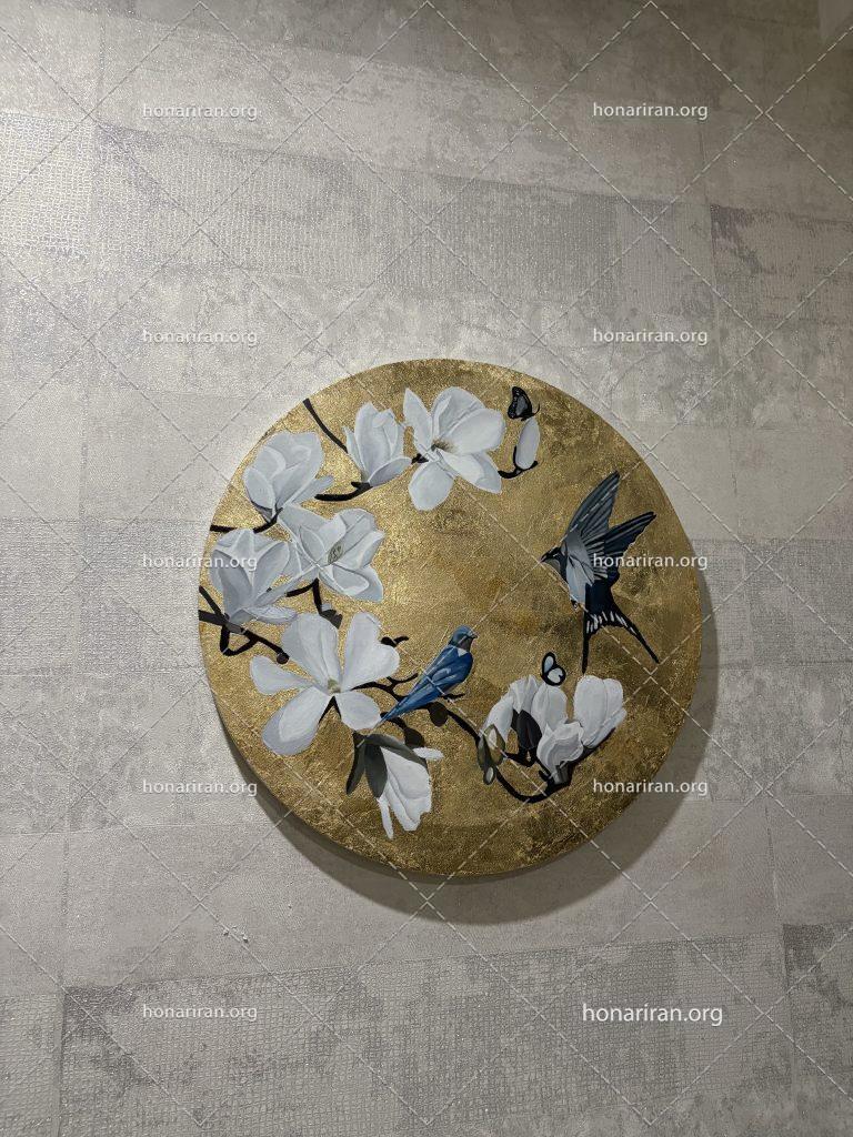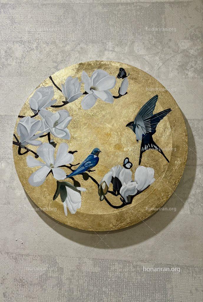 دیوار کوب رنگ روغن ورق طلا تابلو رنگ روغن ابعاد کار قطر ۵۰ و استفاده از بهترین ورق طلا و متریال و در هر ابعادی قابل اجرا میباشد