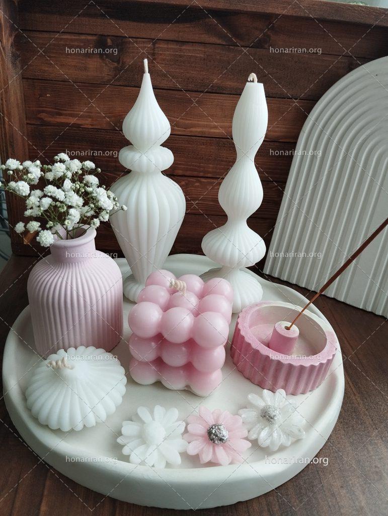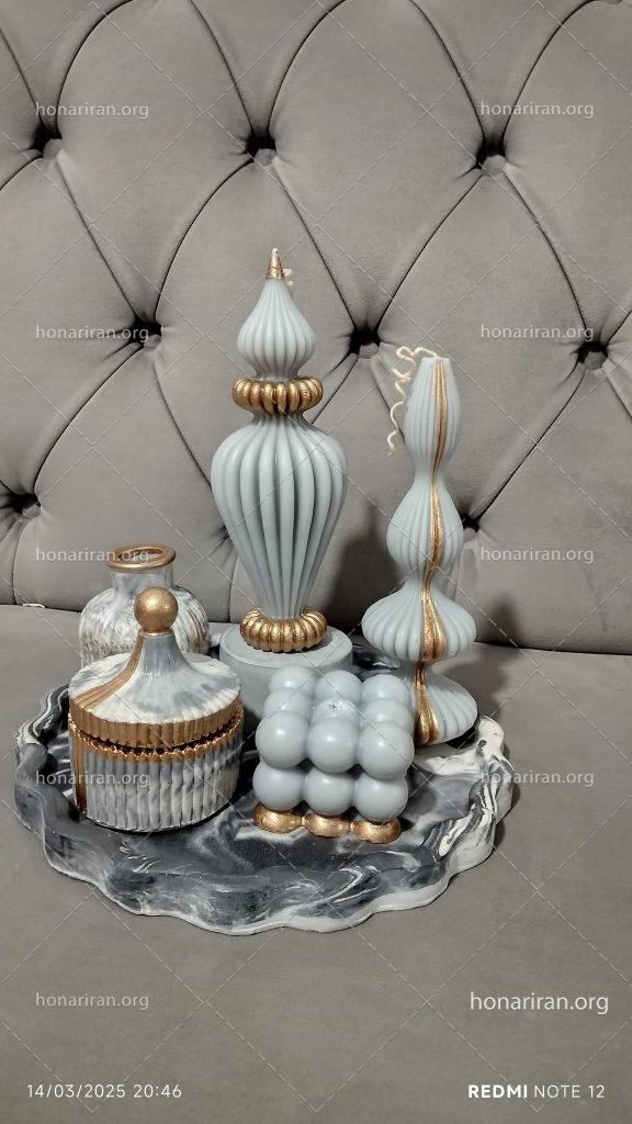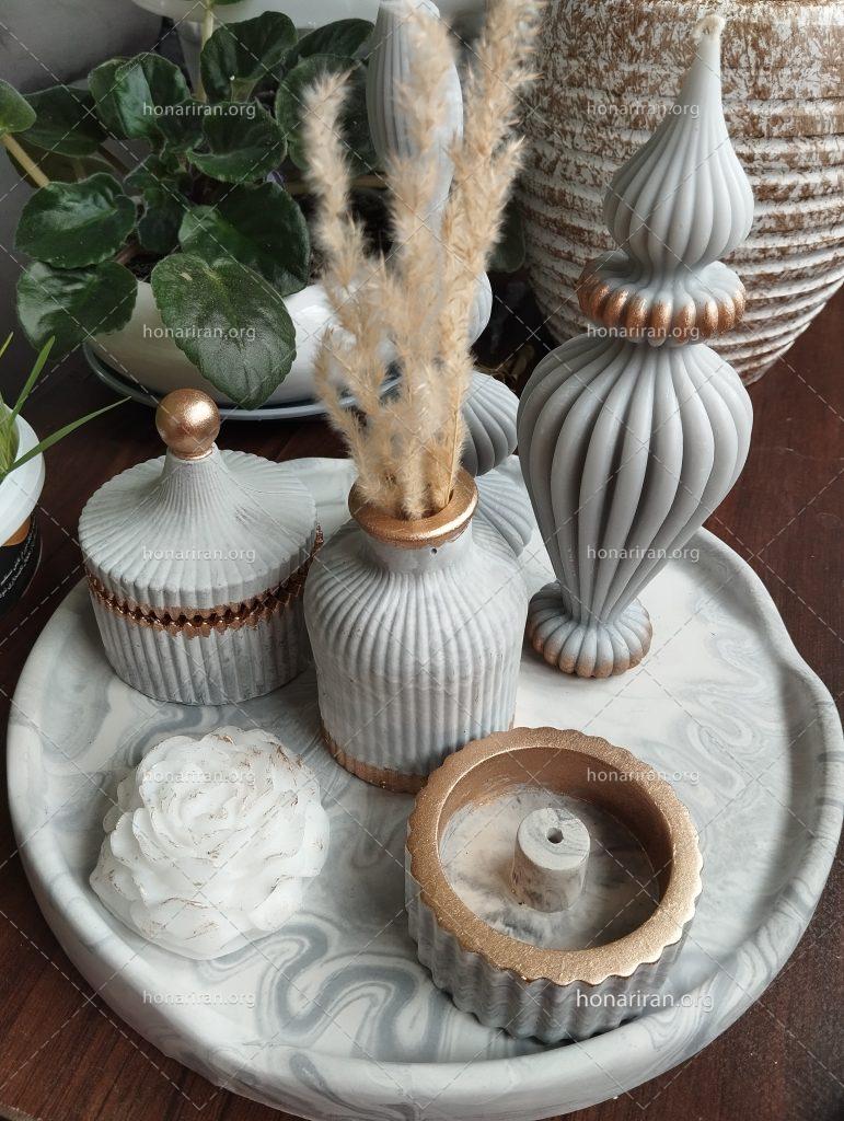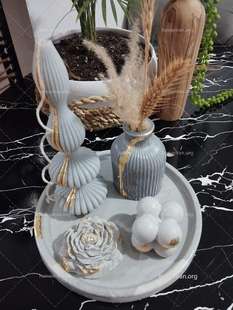 ست سینی دکوراتیو سینی دکوری شامل : سینی گرد گلدان شمع جا عودی