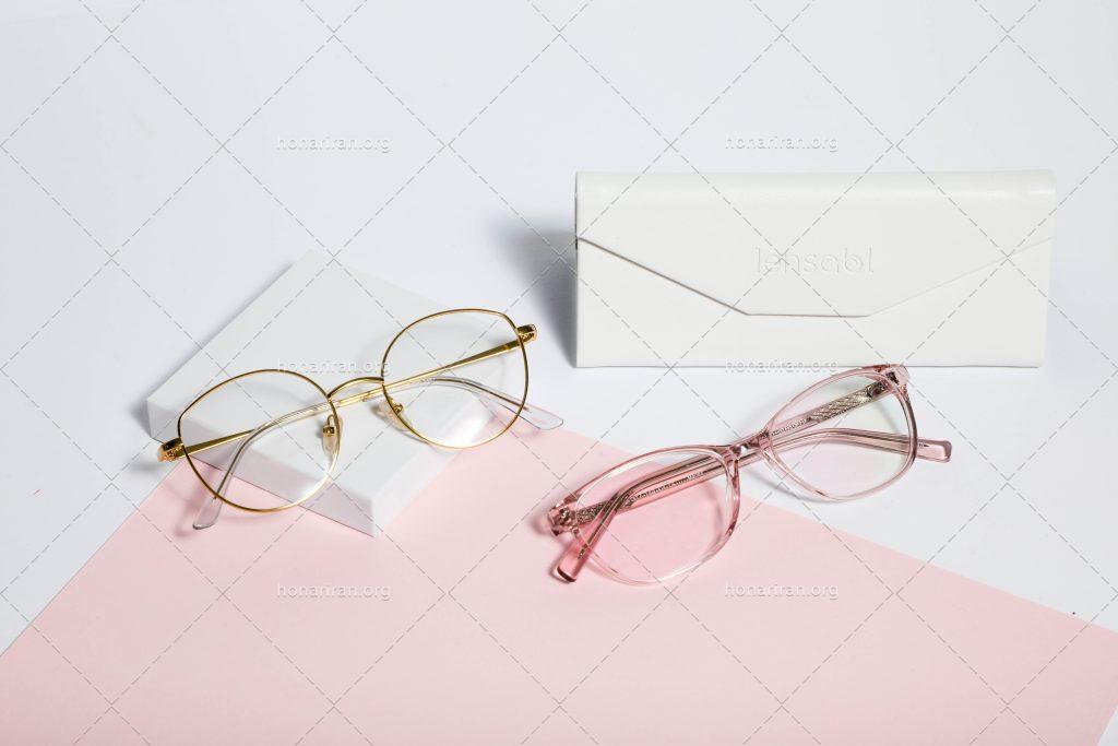 عکس با کیفیت دو عینک طبی به رنگ صورتی و طلایی