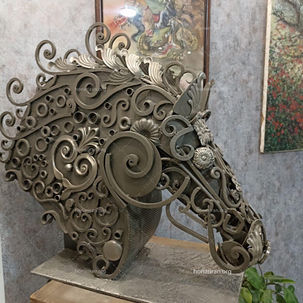 مجسمه اسب چناران کار بازیافتی از فرفورژه های دست ساز ابعاد حدودا ۸۰×۹۰×۵۰ وزن حدودا ۱۲۰ کیلو گرم کار ابتدا سندبلاست شده و سپس کیار شده