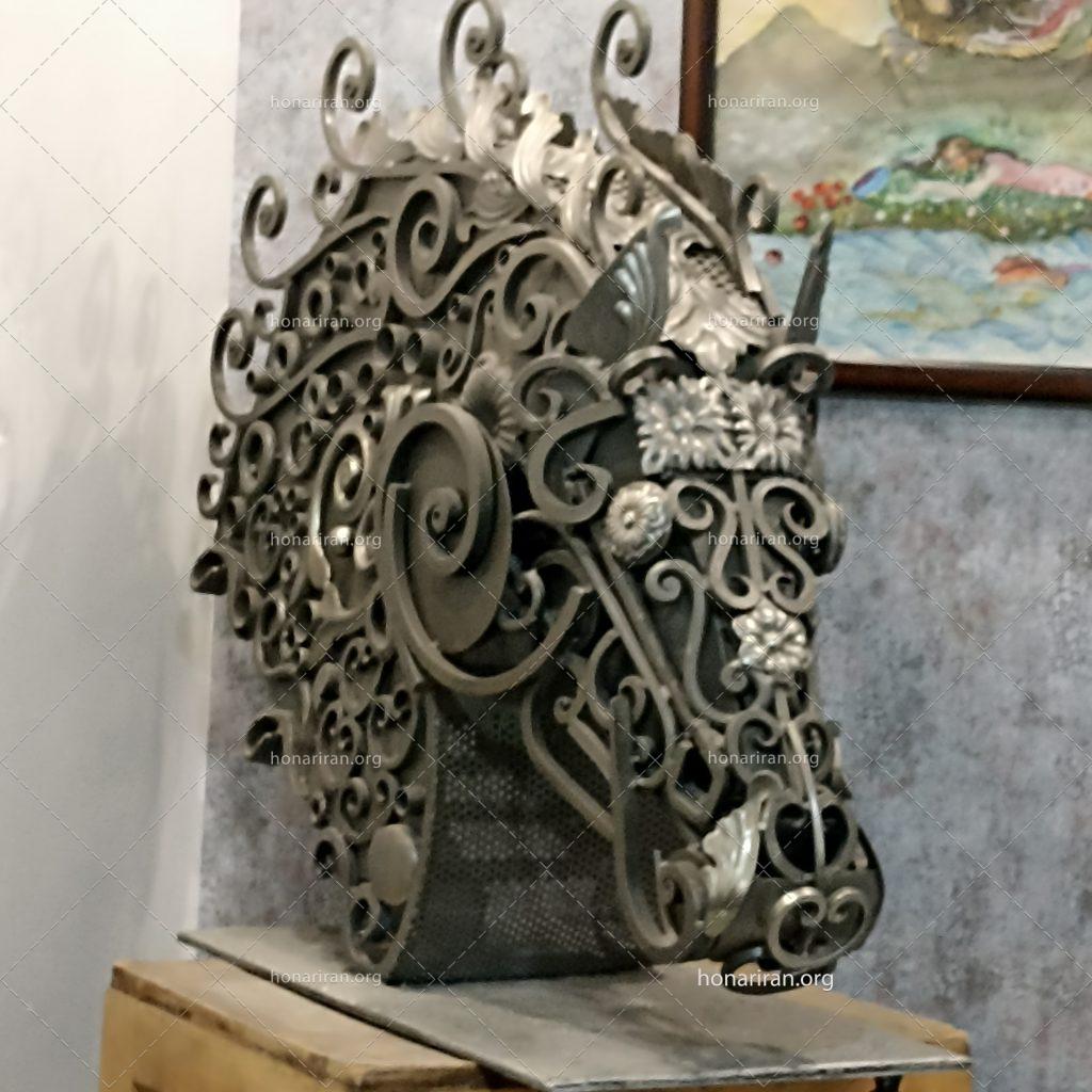 مجسمه اسب چناران تولید اثر با مواد بازیافتی فرفوژه دستی بعد ساخت سندبلاست و کیار شده و آماده نصب