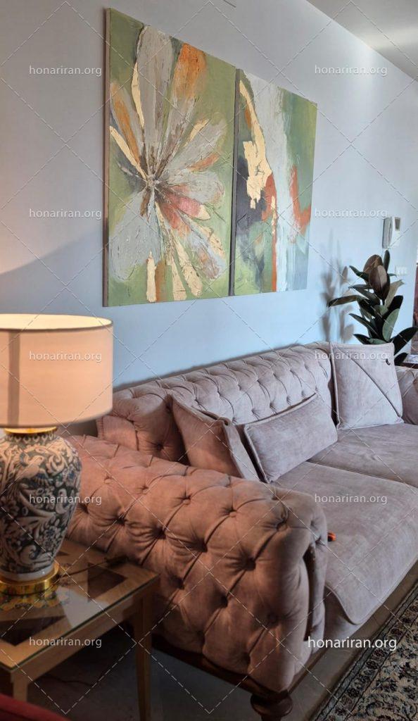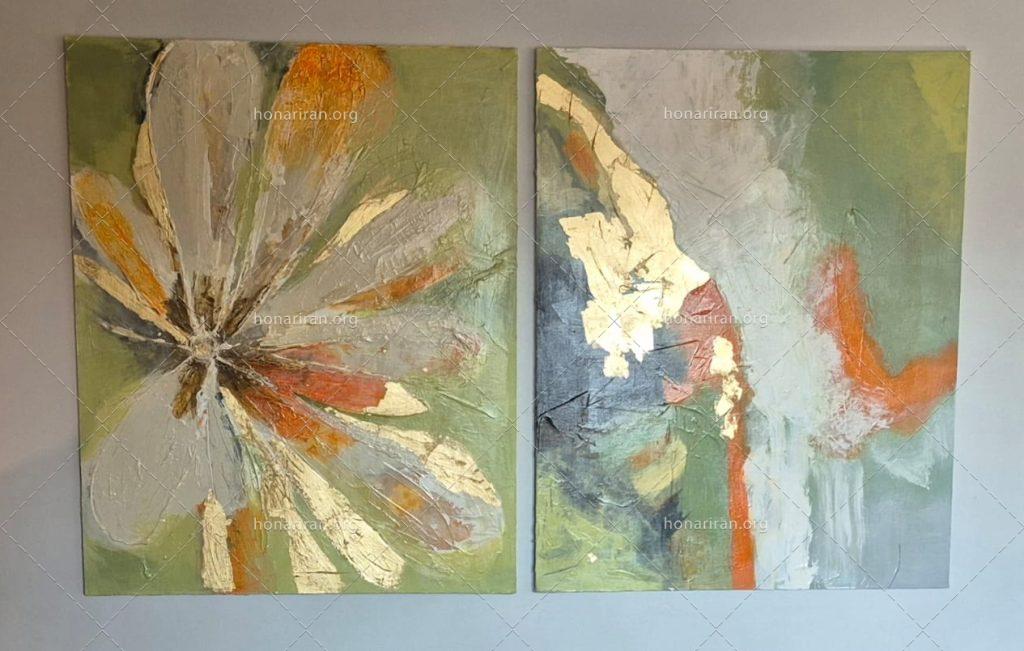 تابلوی دکوراتیو،تکنیک اکریلیک و همچنین استفاده از ورق طلا و تکسچر جهت ایجاد بافت برجسته.