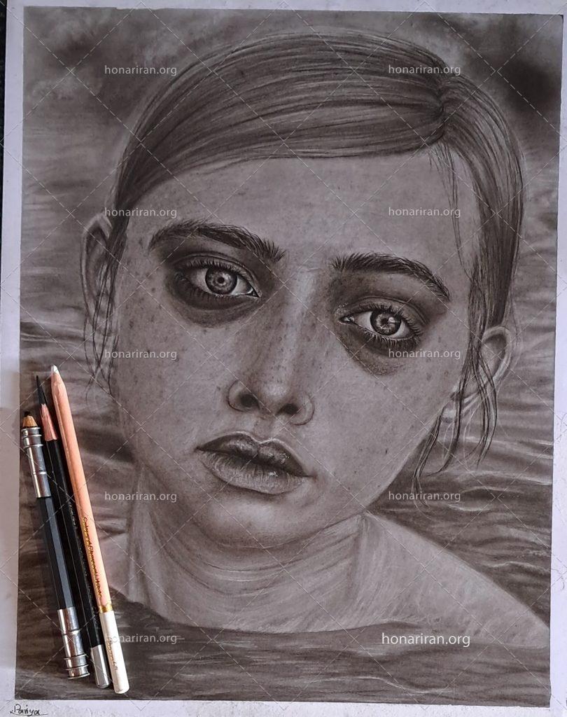 نقاشی سیاه قلم غرق ناامیدی پرتره سیاهقلم این طرح حس ناامیدی و غرق شدن در ناامیدی و خستگی رو نشون میده.