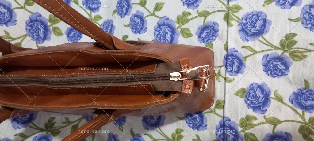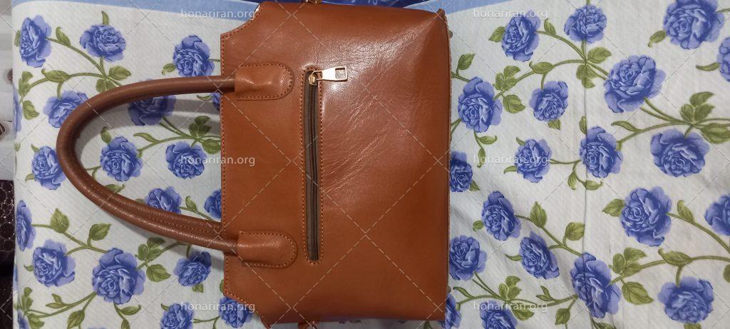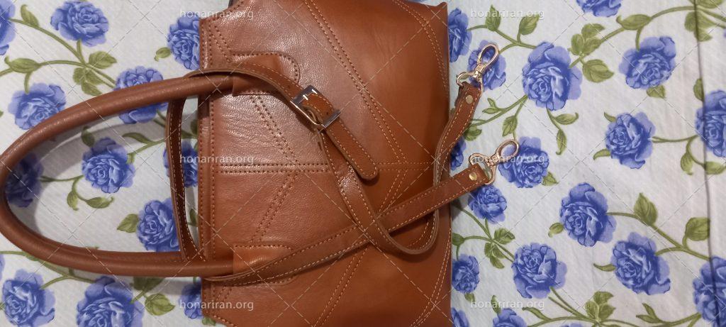 کیف دست دوز چرم طبیعی چرم گاوی دست دوز رنگ قهوه ای ب صورت میشه استفاده کرد هم دوشی و دستی