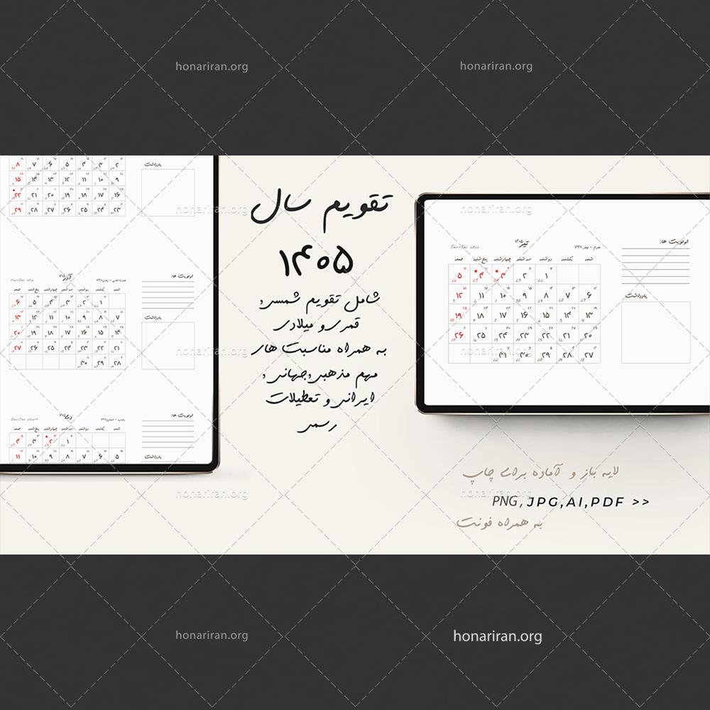 #تقویم #لایه_باز #1405 #دستنویس #ایلستریتور #چاپ #پلنر