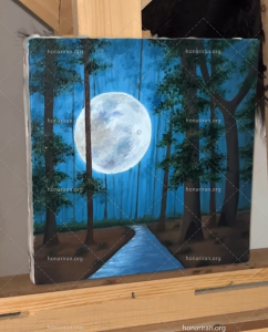 تابلو رنگ روغن ماه و شبِ جنگل