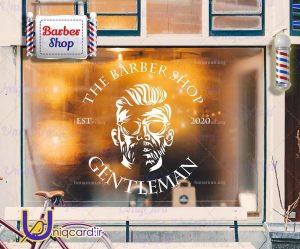 طرح لایه باز استیکر و برچسب شیشه آرایشگاه مردونه با طرح چهره مرد پیرایشگر