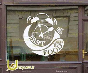 طرح لایه باز استیکر و برچسب شیشه رستوران با طرح انواع فستفود و غذای سریع