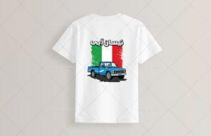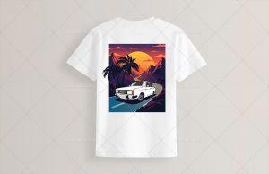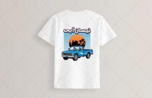 طرح لایه باز تیشرت افق غروب و خودرو پیکان