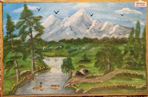 نقاشی اکریلیک گل و مرغ