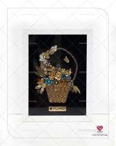 میناکاری: هنر ساخت آثار هنری با استفاده از رنگ‌های مینا و انفجاری کردن آنها در طلا یا نقره.