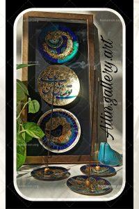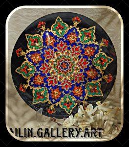 میناکاری: هنر ساخت آثار هنری با استفاده از رنگ‌های مینا و انفجاری کردن آنها در طلا یا نقره.