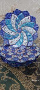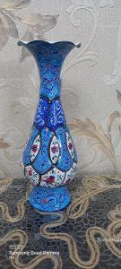 میناکاری: هنر ساخت آثار هنری با استفاده از رنگ‌های مینا و انفجاری کردن آنها در طلا یا نقره.