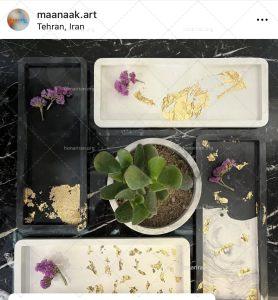 میناکاری: هنر ساخت آثار هنری با استفاده از رنگ‌های مینا و انفجاری کردن آنها در طلا یا نقره.