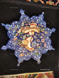 میناکاری: هنر ساخت آثار هنری با استفاده از رنگ‌های مینا و انفجاری کردن آنها در طلا یا نقره.
